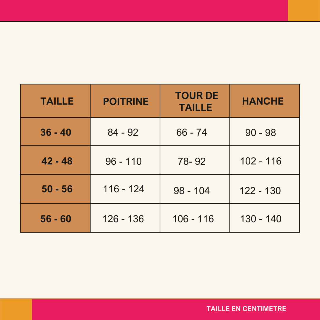 Tour de taille : Prenez la mesure à la partie la plus étroite de votre taille, juste au-dessus du nombril.